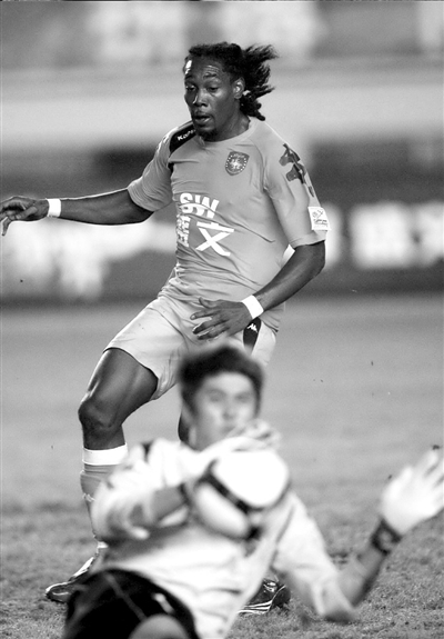 長(zhǎng)春亞泰的作風(fēng)令新帥非常欣慰。圖為青島隊(duì)球員布朗在門前包抄。