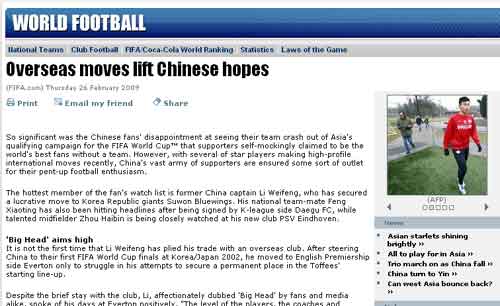 中新網2月27日電 馮瀟霆、周海濱的自由轉會海外,堪稱中國足壇的“博斯曼”橫空出世。他們不僅引爆了國內足壇,也吸引了FIFA的注意。國際足聯(lián)官方網站上也對此事進行了關注。