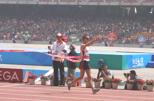 澳大利亞選手扎里德-塔蘭(Jared Tallent)沖過終點(diǎn)線瞬間。(圖片來(lái)源于北京奧運(yùn)官網(wǎng))