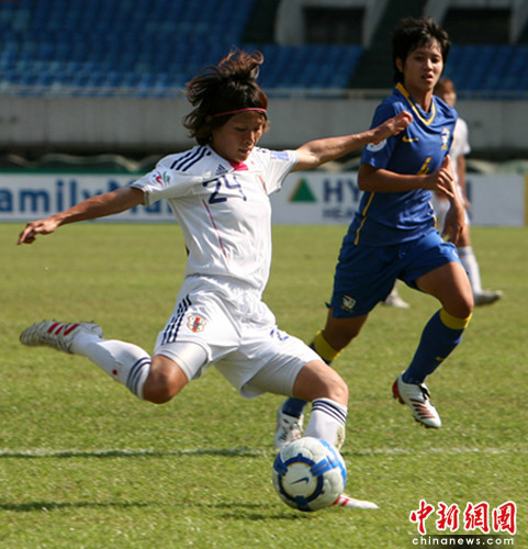 中新網(wǎng)成都5月22日電(記者劉忠俊 劉賢)5月22日,2010年女足亞洲杯賽進(jìn)入第四天,泰國女隊迎戰(zhàn)亞洲強隊日本隊,比賽開始泰國隊從氣勢壓倒了日本隊,直至第28分鐘左右日本隊才由22號前鋒高瀨愛實攻入第一個球。由于實力懸殊太大,最后泰國隊以0:4負(fù)于日本隊。目前,日本隊以2勝積6分,順利出線。