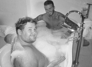 貝克漢姆手術(shù)成功,英國媒體心情也不錯。《每日鏡報》昨天發(fā)了一張貝克漢姆和英國喜劇明星科登一起洗“鴛鴦浴”的圖片,這張照片是幾周前在米蘭拍的,當時兩人都是為BBC的一個慈善短片客串。兩人在浴缸里一共呆了3分鐘,貝克漢姆還對科登身體的多個部位點頭贊賞。這段畫面被BBC稱為這段慈善短片中“最有喜劇效果的鏡頭”。