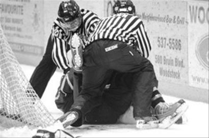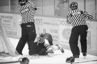 有時候勸勸架也會惹禍上身。日前,在加拿大安大略烏斯托克冰球賽場上爆出一樁“血案”:年僅25歲的邊裁在勸架時被隊員的冰刀割頸,血流不止昏迷。