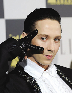 美國當(dāng)?shù)貢r(shí)間2010年3月6日,有“冰上水仙男”之稱的美國花滑選手約翰尼·威爾給了人們一個(gè)驚喜,出現(xiàn)在了洛杉磯的某電影節(jié)上,當(dāng)天威爾大擺pose,魅力四射。