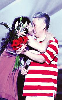 前日一場演出中,趙本山穿條紋T恤亮相,秀起二胡技藝,還拉馮小剛一起上臺。這時一個穿著粉嫩短裙的美眉沖上臺來為趙本山獻花,還湊上前去接吻,不過趙本山看上去相當(dāng)不愿意……轉(zhuǎn)過身來觀眾們才認(rèn)出“女粉絲”是扮女裝的小沈陽,引來一場哄笑。(東魚)