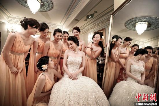 11月8日,郭晶晶出嫁前的喜悅。當(dāng)天,霍啟剛和郭晶晶正式的婚禮儀式在香港沙宣道霍家大宅舉行。超過(guò)百位嘉賓,包括夫妻雙方的家庭成員,伴娘和伴郎,出席并見證了婚姻的儀式。中新社發(fā) 通聯(lián) 攝
