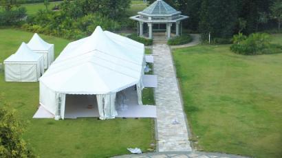 為露天酒會(huì)準(zhǔn)備的帳篷已經(jīng)搭好。