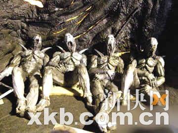 盡管這組劇照中沒能曝光重要角色“短笛大魔王”的造型,但是在擔(dān)任劇組特別化妝效果師的好萊塢資深化妝師Edward French 的個(gè)人主頁上,卻有一張魔王的“去頭照”;诒C芾碛,這張照片在魔王的頭部打上TOPSECRET(最高機(jī)密)的標(biāo)簽。余下的身體部分,乍一看以為是蝙蝠俠造型,但從手臂的肌理來看,確實(shí)與《龍珠》原著的短笛的種族特征相去不遠(yuǎn),除了膚色黝黑與原著的綠色有出入之外,恐怕這就是千真萬確的大魔王本尊了。Edward French 還談到,如此耗時(shí)的化妝,長達(dá)一個(gè)半月以來他重復(fù)進(jìn)行著,所幸詹姆斯·馬斯特斯這位專業(yè)的演員十分和善也很配合。