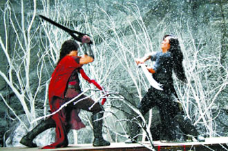 “風(fēng)”、“云”再度聚首,引影迷期待無(wú)數(shù)!肮聿拧睂(dǎo)演彭氏兄弟坦言,拍《風(fēng)云Ⅱ》不怕被比較,“由于特技水平的提高,《風(fēng)云Ⅱ》的視覺沖擊力一定會(huì)大大加強(qiáng)!迸硎闲值軓(qiáng)調(diào),《風(fēng)云Ⅱ》并不是《風(fēng)云之雄霸天下》的重拍或者續(xù)集,而是圍繞“聶風(fēng)入魔死戰(zhàn)”展開的全新故事。不過(guò),由于《風(fēng)云Ⅱ》的武打場(chǎng)面比十年前的《風(fēng)云之雄霸天下》有過(guò)之而無(wú)不及,所以,兩位主演都表示他們?cè)陂_拍前進(jìn)行了體能訓(xùn)練,一個(gè)專練腿功,一個(gè)專練臂力。
