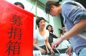 繼上海和廣州兩站義映后,賈樟柯攜新作《二十四城記》來到母校北京電影學(xué)院進(jìn)行了第三場放映,和主演趙濤一起再次為四城市義映活動(dòng)親力親為。本場放映共籌得善款超過3萬元,人均68元。北京的觀眾對于這次義映也表現(xiàn)出了極大的熱情,除了之前預(yù)訂的300席之外,現(xiàn)場買票的觀眾也多達(dá)近200人,不少觀眾更是提前兩個(gè)多小時(shí)便來到現(xiàn)場,其中有五位觀眾在每人捐出100元購買電影票之后,又再次各自掏出500元,表示支持本次義映活動(dòng),愿意為災(zāi)區(qū)文化設(shè)施重建獻(xiàn)出愛心;一位最早到達(dá)的觀眾還主動(dòng)提出在現(xiàn)場擔(dān)任義務(wù)售票員的工作;而不少恰巧路過的行人在了解本次義映活動(dòng)的情況之后,更是立刻買票表示支持。觀眾的熱情令劇組和本報(bào)工作人員十分感動(dòng),在影片放映前,賈樟柯站在臺(tái)上向四百多位觀眾深深鞠躬,表達(dá)對大家的謝意。