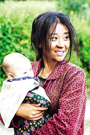 還有櫻桃為紅紅送傘的戲,一路上,無數(shù)次跌下梯田的田埂,卻又堅強地爬起來,好不容易到達了學校,站在雨中,那樣純真無邪地笑著看著紅紅,眼中不帶任何雜質(zhì)。即使沒有語言,僅僅一個微笑,已讓人感動淚流。