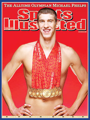 菲爾普斯身戴八塊金牌,登上美國(guó)體育雜志封面