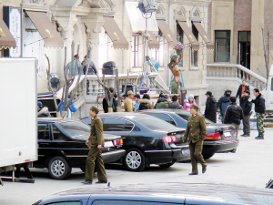 昨日,《風(fēng)聲》劇組在天津的拍攝仍在繼續(xù),但保密工作有增無(wú)減,劇組上下統(tǒng)統(tǒng)封鎖消息,記者通過(guò)多方打探終于得知,劇組已轉(zhuǎn)場(chǎng)到位于天津站附近的一宮對(duì)面拍攝,此處有多棟意大利風(fēng)格的小洋樓,也屬于天津歷史風(fēng)貌保護(hù)建筑之一,在現(xiàn)場(chǎng)記者足足等了三個(gè)小時(shí)才見(jiàn)到久聞的周迅現(xiàn)身。