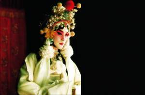 照片中的“Leon版”梅蘭芳,虞姬做手與眼神看出他下過不少工夫,但因先天條件不足,Leon的臉型本屬長方形,縱使靠兩邊大貼片“打救”,面相也難營造出具女性美的鵝蛋臉、下巴尖尖的效果,加上并非眼睛圓大的Leon,眼神欠了一點(diǎn)嬌美媚態(tài),跟擁有一張鵝蛋臉、圓大眼睛及性感的豐厚嘴唇,天生一副美人胚子的梅蘭芳相比,就算Leon竭盡所能演繹,也礙于先天輪廓及形態(tài),跟梅蘭芳韻味有一大段距離。反之,在片中飾演梅蘭芳青年版的余少群,外形條件加上他有十多年漢劇文武小生的功底,神態(tài)與造型吸引得多。