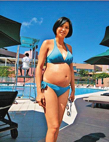 據(jù)報(bào)道,盧淑儀生產(chǎn)前效法不少外國(guó)女星般拍攝大肚泳衣照,她在7月27日的網(wǎng)志中,張貼自己在泳池邊拍攝的三點(diǎn)式照片!班耍业暮糜,來(lái)看看我的寶貝越來(lái)越大,好開心!”其后又在10月10日貼上另一幀大肚照,即將生產(chǎn)的她用尺量腰圍,并指腹大便便的肚子說:“我的腰圍43吋!”