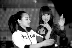 昨天,蔡依林在工人體育館為即將于今明兩晚舉行的“唯舞獨(dú)尊”演唱會進(jìn)行彩排。前奧運(yùn)冠軍劉璇應(yīng)邀到場,指導(dǎo)蔡依林在表演過程中的體操動作。對于蔡依林的表現(xiàn),劉璇不時鼓掌予以肯定。蔡依林坦言對自己的表演很有信心,唯一擔(dān)心的是“機(jī)關(guān)重重”的四面舞臺,希望到時候不要暈臺。