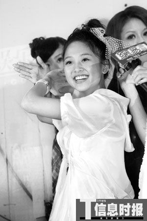 裝可愛是這群小女生的拿手本領(lǐng),應(yīng)主持人要求后,MeiMei率先在臉頰邊擺出OK的手勢,再配合微嘟的嘴,十分可愛。走氣質(zhì)美女路線的Apple則使出“一陽指”功夫,緊貼嘴唇做出“噓”的動作。大牙左右手并上,動作幅度大,謀殺了不少菲林。搞怪的鬼鬼擺出像龜波氣功的姿勢還笑說:“這是翻蓋手機(jī)!倍蠓降乃粏柶鹑藲飧呤欠褚驗楹秃谌恕巴印(其實只是房東跟房客的關(guān)系)時,就立刻流露出羞澀的神態(tài)一個勁揮手:“哎呀,不要這么說,他是好哥哥,很照顧我而已。”
