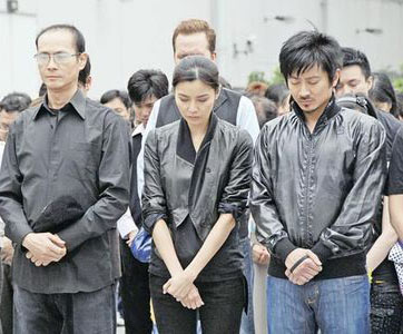 中新網(wǎng)5月20日電 香港無線全體演職員昨天中午于將軍澳電視城發(fā)起默哀活動(dòng),逾百位藝員及數(shù)百位職員合共500多人,齊集電視城停車場(chǎng),在無線總經(jīng)理陳志云帶領(lǐng)下,于14時(shí)28分為四川汶川大地震遇難的同胞默哀3分鐘。默哀開始不久即下起毛毛細(xì)雨,多位藝人包括關(guān)菊英、苗僑偉、蒙嘉慧、陳法拉等于默哀時(shí)不禁落淚,場(chǎng)面莊嚴(yán)而凄涼。