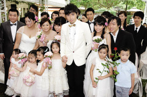 古巨基帶領(lǐng)10對(duì)新人一起走過紅毯時(shí),也邀請(qǐng)了一位6歲的小女孩擔(dān)任自己的女伴。被浪漫婚禮氣氛打動(dòng)的古巨基感慨地說:“一直很想結(jié)婚!很向往家的感覺,但可惜一直沒有遇到另一半的緣分!鄙磉呥@位6歲的小女伴,私底下透露說很喜歡古巨基哥哥,但是當(dāng)古巨基在大家面前向她“求婚”:“我等你12年,你嫁給我好嗎?”小女孩卻害羞地多次推開古巨基的麥克風(fēng),斬釘截鐵地說:“不要!”令古巨基頗為尷尬。(記者柳治)