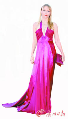 女演員依琳娜·博里卡身穿玫瑰紅禮服出席《閱后燃燒》首映禮。