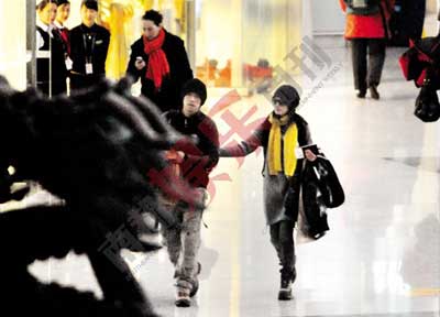 第二天凌晨5點(diǎn),記者就爬起床來趕到夏雨公寓外守候。早晨7點(diǎn)20分左右,一對穿著厚重棉衣的男女拖著行李箱走出大門打車。記者一眼就認(rèn)出他們就是夏雨和袁泉。兩人裝扮很有點(diǎn)情侶裝的感覺,都戴黑色毛線帽子、穿著鹿皮旅游鞋,一副出門遠(yuǎn)游的樣子。除了兩個(gè)大的旅行箱外,夏雨還抱著一個(gè)長長的裝著滑雪板的紅袋子。夏雨和袁泉一起把行李放進(jìn)出租車,然后上車朝機(jī)場方向駛?cè)。到達(dá)機(jī)場后,夏雨先下車推來行李車放行李箱,袁泉一只手幫夏雨推車,一只手挽住夏雨的胳膊。他們進(jìn)入機(jī)場大廳后先是辦理登機(jī)卡,然后托運(yùn)行李,最后還兌換外幣。整個(gè)過程中,兩人很少交流,即使說話也是低聲細(xì)語,但表情輕松愉快。因?yàn)榇髲d里很熱,夏雨脫下羽絨服,而袁泉馬上幫夏雨接住背包,袁泉還幾次自然地挽住了夏雨胳膊,無意間流露了情感。當(dāng)所有事宜辦好后,兩人并肩走進(jìn)登機(jī)入口,開始了他們甜蜜的北海道滑雪之旅。