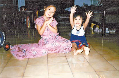 2歲的她(右)在姊姊身旁,非常愛秀。