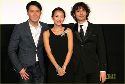 當(dāng)天的章子怡身穿黑色禮服,胸前的蜻蜓配飾和頭發(fā)的配飾交相輝映,優(yōu)雅高貴,銀色裙邊閃亮耀眼,配上招牌甜美笑容,看來對(duì)此次《梅蘭芳》日本之行很有信心。