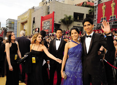 獲獎(jiǎng)之后,《貧民窟的百萬富翁》的男女主角、18歲的戴夫·帕特爾和24歲的芙蕾達(dá)·平托平步青云,成為好萊塢的搶手貨。不僅片約不斷,他們還頻繁登上各類時(shí)尚雜志,甚至NBA全明星賽等各大典禮都給他們發(fā)出了邀請函,成了現(xiàn)實(shí)中名副其實(shí)的“百萬富翁”。