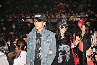 據臺灣聯(lián)合報報道,張柏芝與謝霆鋒抱著兒子姍姍來遲,陳奕迅演唱會開場時才現身,張柏芝穿著一身黑色寬松衣服,頭戴黑色骷髏骨頭布巾及大墨鏡,手上拎著大紅LV包包,手挽著謝霆鋒走到VIP區(qū),短短路程成為焦點,心情愉悅的柏芝,不斷與觀眾揮手致意,柏芝中途離場,經紀人強調她沒懷孕,只是腸胃炎不舒服。