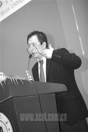 9點(diǎn)30分,閃光燈不停閃爍,張鐵林剛一出現(xiàn),歡呼聲、掌聲立即爆響。張鐵林身穿一套深色西裝,扎著領(lǐng)帶,戴著一副金邊眼鏡,地道的學(xué)者氣派。一進(jìn)會場就遭遇學(xué)生、媒體的圍堵。