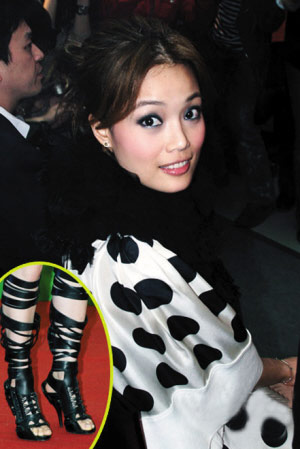 4月19日,韓國人氣偶像李準(zhǔn)基與香港樂壇天后容祖兒共同亮相北京,為商場活動擔(dān)任嘉賓。同為流行偶像,兩人分別以別致的發(fā)型與最I(lǐng)N的綁帶涼鞋盡顯潮流指數(shù)。貴為香港樂壇的當(dāng)紅一姐,容祖兒的穿衣風(fēng)格日漸大氣,她身穿今年大熱的GIVENCHY春夏新品綁帶涼鞋搭配宮廷風(fēng)格的波點裙,莊重中亦帶有一絲甜美俏皮。白色西裝亮相的李準(zhǔn)基雖然衣著低調(diào),卻在頭發(fā)上大做文章。發(fā)型從正面看并不顯山露水,轉(zhuǎn)至側(cè)面方顯機關(guān),馬尾辮造型突出其一貫的陰柔之美,可謂細(xì)節(jié)中見真功。