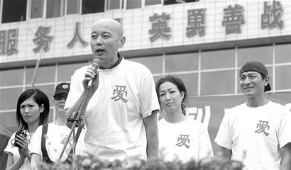作為活動的發(fā)起人——四川女婿張國立用四川話鼓勵大家:“大家辛苦了!地震雖然摧毀了我們的家園,我們可以建設(shè)更好的家園,天災(zāi)雖然無情,但是我們?nèi)硕加星。我們一起喊四川加油!四川雄起哈!”現(xiàn)場每一個人都高舉右手,高呼:“四川加油!四川雄起!” 記者馬丹 攝影劉亮
