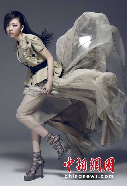 內(nèi)地女歌手張靚穎以全新造型登陸國內(nèi)某時尚平面雜志,成為封面女郎,幾款造型落落大方,讓人眼前一亮。