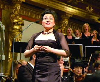 15日在維也納金色大廳舉行的首屆全球華人新春音樂會(huì)上,美籍華人女高音歌唱家黃英在演唱。當(dāng)晚,100多名藝術(shù)家在這里用音樂這一世界性語言詮釋了復(fù)興中的中華民族和諧、發(fā)展與振興的時(shí)代強(qiáng)音。