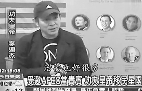 “功夫皇帝”李連杰移民新加坡一直是“公開的秘密”,日前他受邀以中小企業(yè)代表身份參加在新加坡舉行的APEC會議。當(dāng)時(shí)主持人問他現(xiàn)在移民新加坡了,對新加坡有何看法,李連杰表示,相比其他城市,新加坡干凈很多,治安好很多,天氣也熱很多。同時(shí)他還透露,辦壹基金是靠妻子利智給錢。