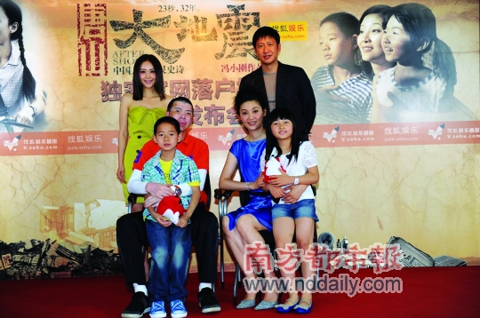 昨日,即將于7月22日在內(nèi)地、香港、臺(tái)灣同步上映的《唐山大地震》在搜狐網(wǎng)開通了電影官方網(wǎng)站,導(dǎo)演馮小剛攜主演徐帆、張國(guó)強(qiáng)等出席發(fā)布會(huì)與網(wǎng)友一同分享了他們關(guān)于30年前的記憶,并首度向外界公布了影片中“張國(guó)強(qiáng)、徐帆一家”的全家福照片。而在隨后的采訪中,馮小剛則否認(rèn)了徐帆因?yàn)槭亲约浩拮硬诺靡猿鲅荨洞蟮卣稹返膫髀,“徐帆的水平在那兒擺著,她撐起了這部電影的魂!蓖瑫r(shí),對(duì)于影片的票房,馮小剛再次放出豪言,“誰不服,就和《大地震》同天上映!”