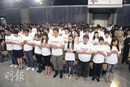 亞視集400位職藝員默哀悼念四川大地震死難者。