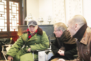 陳凱歌是華人導(dǎo)演中惟一獲得過金棕櫚大獎的,因此福茂來到中國后第一個想見的導(dǎo)演便是他。昨天下午,《梅蘭芳》劇組在懷柔拍攝一場黎明和陳紅的對手戲。3點(diǎn)左右,福茂先生一行3人在工作人員的引導(dǎo)下直接來到了拍攝現(xiàn)場。福茂見到坐在監(jiān)視器前的陳凱歌導(dǎo)演后,先來了一 個熱情的擁抱,隨后就坐在了監(jiān)視器前,與導(dǎo)演親切地交談起來。