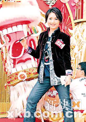 千女華前日為“海港城金龍醒獅賀新歲”任嘉賓,她乘坐插有“楊”字大旗的八人大金轎進場,并即席表演舞獅,更逐一向圍觀的市民派大利市。