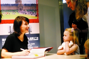 因行程緊,比諾什晚了近一小時才到。狹小的法國文化中心里,等待“才女”的中外影迷排到了大門外,有坐輪椅的,有帶小孩的。“就等看一眼她真人”這樣的興奮低語此起彼伏。有人借著簽售給比諾什遞去寫得滿滿的信,也有沒買書仍擠上前去的,還有自稱看了三場《我之深處》的比諾什“舞迷”。更多的人拿起300元一本的書,掂了掂就放下了,轉(zhuǎn)而扶緊相機捕捉影星顰笑。