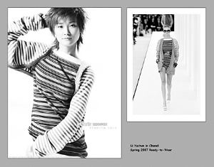 最近,“玉米”們很費心思地做了一系列圖片,主題是他們家春春穿著各大名牌的衣服和模特的對比圖。結(jié)果我們發(fā)現(xiàn),李宇春真的能把許多衣服穿出自己的感覺,并且不僅僅是中性。想象一下李宇春穿香奈兒套裝會是什么樣子?模特走秀時穿的這系列成衣都是香奈兒家典型的纖細(xì)優(yōu)雅風(fēng),而同樣的衣服穿在李宇春身上,則多了幾分青蔥少年的特質(zhì)?纯雌渌恼掌,我們可以發(fā)現(xiàn)除了像香奈兒和GUCCI等大牌成衣,最近幾年流行的Y-3和Comme des Gargons等潮牌也是她的最愛,除此之外還有稍微平價些的牌子,比如Diesel和Miss sixty,雖然玉米們的意思是為了證明李宇春穿得比模特好看,但是效果卻是絲毫沒有可比性,因為李宇春的造型師真的是用衣服在襯托明星,而不是讓衣服穿人。