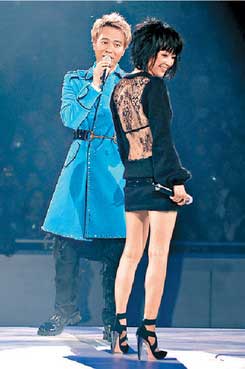 中新網(wǎng)2月15日電 李克勤于大年初二起在紅館開唱,連日來他邀請(qǐng)了多位嘉賓演出,包括陳慧嫻、梁詠琪及容祖兒等,慧嫻更以大露背裝出場(chǎng)。