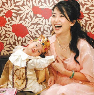 據(jù)臺灣聯(lián)合報報道,小寶弟穿上帥氣的王子裝,伸手要他最愛的公主媽媽抱抱,被醫(yī)師評為“長得超快”的頭圍戴不住王冠,不怕閃光燈的他卻不愿配合笑,但媽媽一句“裝可愛”口令,他馬上擠眉弄眼假笑,另一只手還老不自覺地往媽媽胸口抓,急得這孟庭葦猛護胸:“小寶弟,你對媽媽非禮喔!