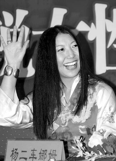 去年在娛樂圈鬧騰了大半年、被評(píng)為2007年娛樂紅人的楊二車娜姆在新年伊始首度高調(diào)出場,帶著她的新書與北京的媒體見面。每個(gè)女人都是一朵花,每個(gè)人都有一朵心中的花!按骰ā背闪藯疃囊粋(gè)符號(hào)。一身傳統(tǒng)的藏式長袍,一頭烏黑的長發(fā)披肩,但是卻少了發(fā)間的那朵標(biāo)志性的大紅花,楊二的這一全新的裝扮讓在座記者都議論紛紛。