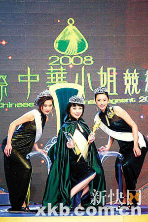 由香港TVB主辦的2008年度“國(guó)際中華小姐”(原名“國(guó)際華裔小姐”)競(jìng)選決賽,前晚移師佛山舉行。本屆港姐冠軍張嘉兒又一舉拿下了“華姐”亞軍的頭銜,既在情理之中,也屬意料之外。而巴黎小姐朱璇,憑借出挑的外表和精湛的演技,最終取得了冠軍與“最青春小姐”兩個(gè)獎(jiǎng)項(xiàng)。