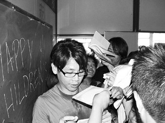 上海SMG和四川成都傳媒集團(tuán)推出的《加油,孩子!——六一兒童節(jié)特別行動》,今天在東方衛(wèi)視和成都電視臺直播。昨天,趁排練空隙,臺灣歌星陶喆和內(nèi)地影視明星鄧超分別來到成都市青羊區(qū)愛心學(xué)校和武侯區(qū)愛心家園,給來自地震災(zāi)區(qū)的孩子們上課……