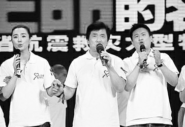 張國立、陳道明、蔣雯麗、宋祖英、葛優(yōu)等從北京趕來,成龍、譚詠麟、劉德華、張學(xué)友、黎明等從香港趕來,吳宗憲、陶喆、王力宏、蘇有朋、孫燕姿等從海峽彼岸趕來……如此強大的明星陣容,成了可歌可泣的災(zāi)區(qū)英雄和群眾的配角,晚會上最打動人心的是發(fā)生在災(zāi)區(qū)的真實故事,而明星們則集體變成了故事員。這些故事讓人在精神上經(jīng)受洗禮,讓心靈受到了震撼。而明星們的動情歌聲和朗誦,則烘托和渲染了這些感人的故事。