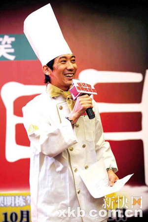 今年5月初,有“形體棟篤笑大師”之稱的香港全能表演藝人張達明攜手本土才女導演思諾在廣州成功首演了“內(nèi)地第一場棟篤笑”——《擺明棟篤笑》。昨天,張達明聯(lián)同監(jiān)制雷宇揚、導演思諾再度亮相廣州,為10月31日連續(xù)兩場《擺明棟篤笑》的重演做宣傳造勢。見面會上,張達明化身為大廚,向大家一一展示了他精心炮制的搞鬼“私房菜”。