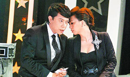阿妹(右)錄像前和蔡康永互抵著頭認(rèn)真研究流程。