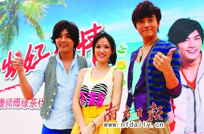 因主演《惡作劇之吻》、《命中注定我愛(ài)你》、《惡魔在身邊》等偶像劇而走紅的臺(tái)灣人氣偶像鄭元暢、陳喬恩、賀軍翔日前現(xiàn)身廣州出席某飲料代言活動(dòng)。