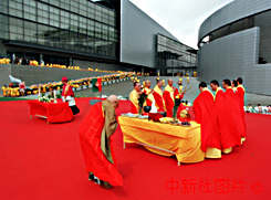 澳門文化中心揭幕典禮上正在舉行宗教祈福儀式。該文化中心座落在澳門新口岸填海區(qū)海邊,其建筑造型設(shè)計新縪,將成為澳門城市的一個標(biāo)志。 |
